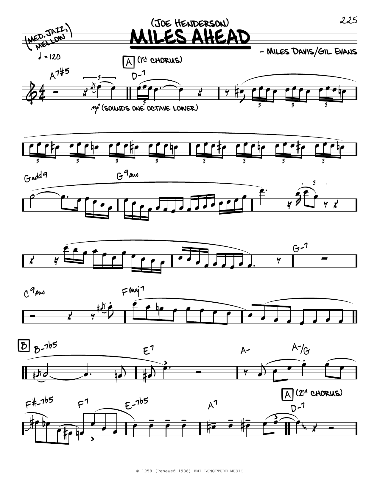 Download or print Joe Henderson Miles Ahead (solo only) sheet music, chords and digital score arranged for Real Book – Melody & Chords. This Jazz score includes 3 page(s).