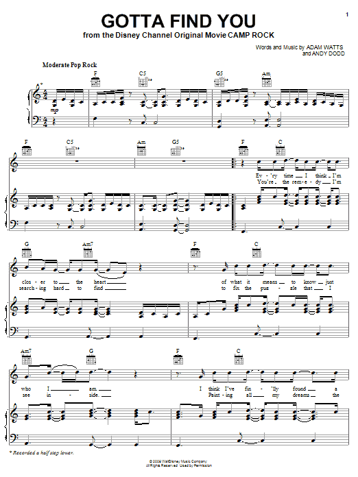 Quick facts Gotta Find You (from Camp Rock) about digital sheet music