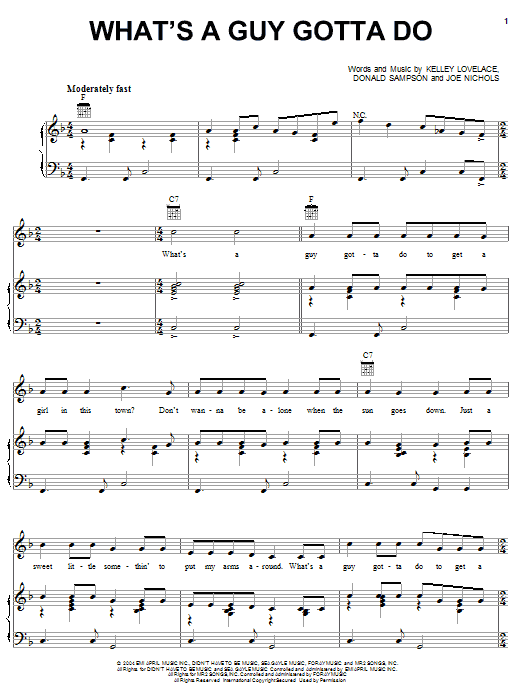 Download or print Joe Nichols What's A Guy Gotta Do sheet music, chords and digital score arranged for Piano, Vocal & Guitar Chords (Right-Hand Melody). This Country score includes 5 page(s).