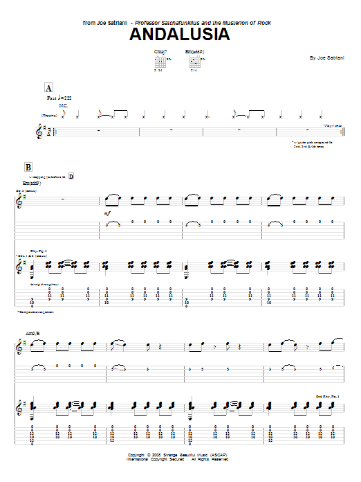 Download or print Joe Satriani Andalusia sheet music, chords and digital score arranged for Guitar Tab. This Pop score includes 23 page(s).