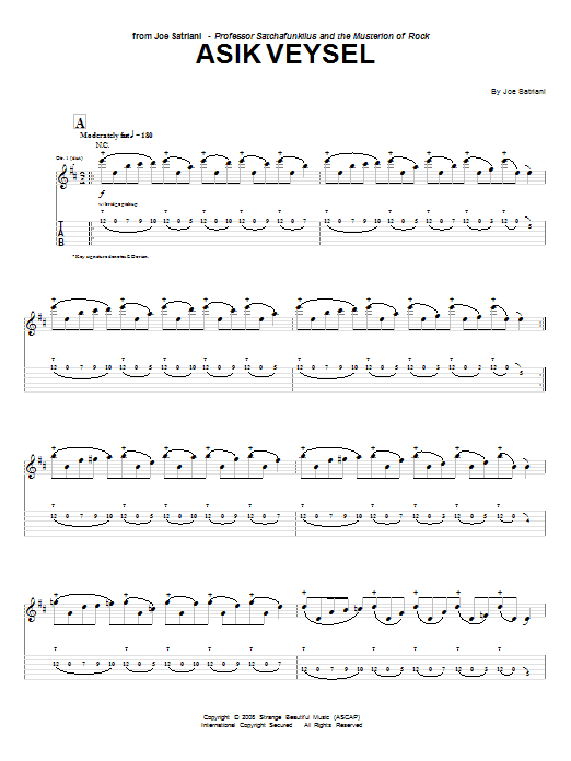 Download or print Joe Satriani Asik Veysel sheet music, chords and digital score arranged for Guitar Tab. This Metal score includes 17 page(s).