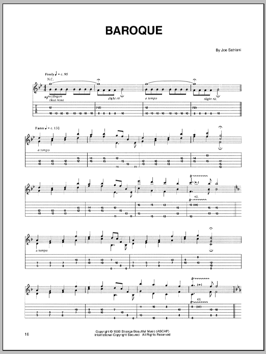Download or print Joe Satriani Baroque sheet music, chords and digital score arranged for Guitar Tab. This Metal score includes 3 page(s).