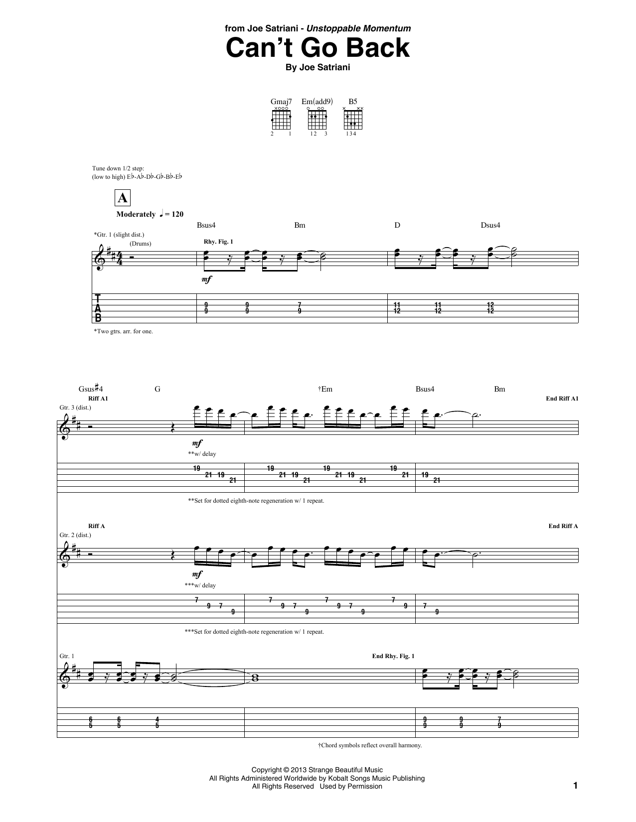 Download or print Joe Satriani Can't Go Back sheet music, chords and digital score arranged for Guitar Tab. This Rock score includes 10 page(s).