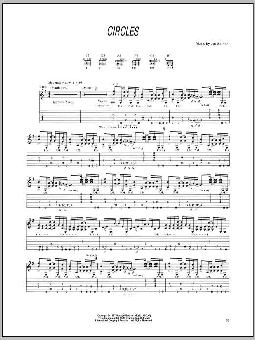 Download or print Joe Satriani Circles sheet music, chords and digital score arranged for Guitar Tab. This Metal score includes 5 page(s).