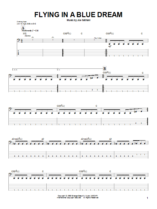 Download or print Joe Satriani Flying In A Blue Dream sheet music, chords and digital score arranged for Guitar Tab (Single Guitar). This Pop score includes 10 page(s).
