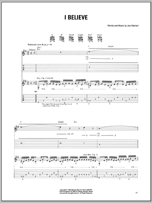 Download or print Joe Satriani I Believe sheet music, chords and digital score arranged for Guitar Tab. This Metal score includes 8 page(s).