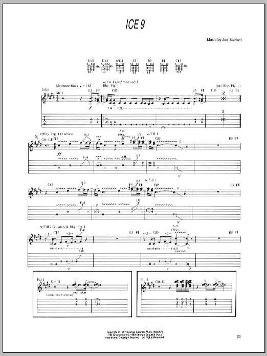 Download or print Joe Satriani Ice 9 sheet music, chords and digital score arranged for Guitar Tab. This Metal score includes 6 page(s).