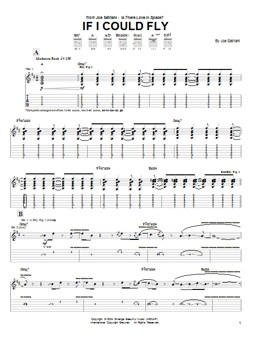 Download or print Joe Satriani If I Could Fly sheet music, chords and digital score arranged for Guitar Tab. This Metal score includes 13 page(s).
