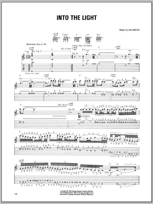 Download or print Joe Satriani Into The Light sheet music, chords and digital score arranged for Guitar Tab. This Metal score includes 2 page(s).