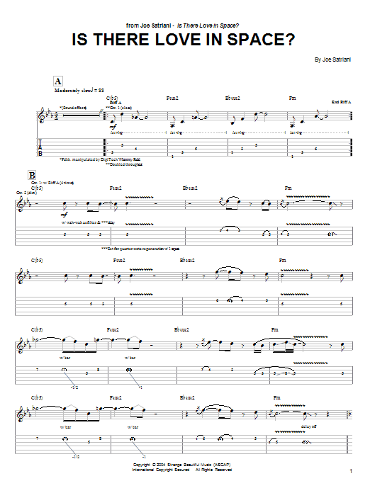 Download or print Joe Satriani Is There Love In Space? sheet music, chords and digital score arranged for Guitar Tab. This Metal score includes 8 page(s).