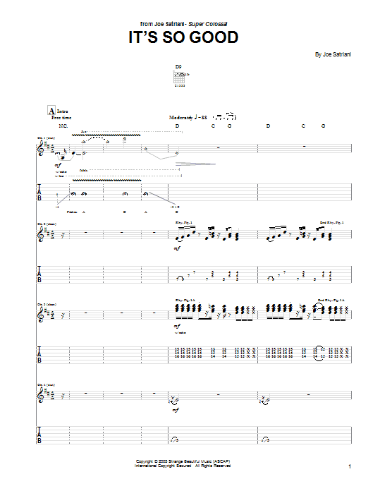 Download or print Joe Satriani It's So Good sheet music, chords and digital score arranged for Guitar Tab. This Metal score includes 10 page(s).