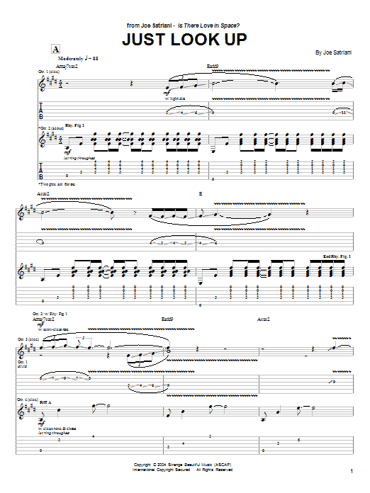 Download or print Joe Satriani Just Look Up sheet music, chords and digital score arranged for Guitar Tab. This Metal score includes 8 page(s).