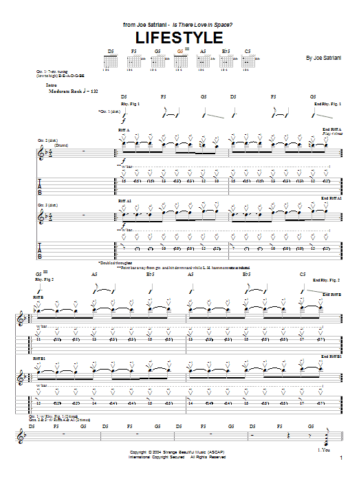 Download or print Joe Satriani Lifestyle sheet music, chords and digital score arranged for Guitar Tab. This Metal score includes 8 page(s).