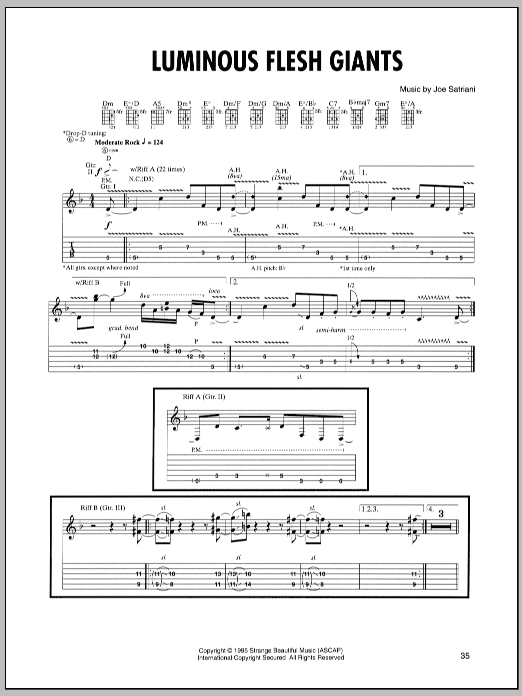 Download or print Joe Satriani Luminous Flesh Giants sheet music, chords and digital score arranged for Guitar Tab. This Metal score includes 14 page(s).