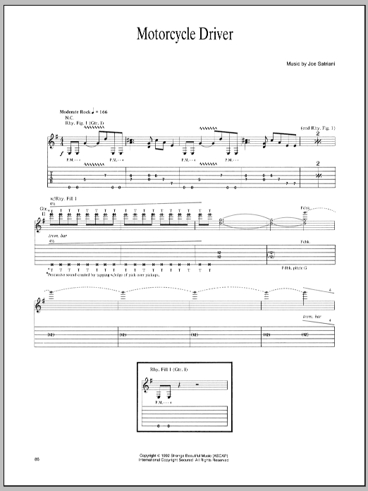 Download or print Joe Satriani Motorcycle Driver sheet music, chords and digital score arranged for Guitar Tab. This Metal score includes 12 page(s).