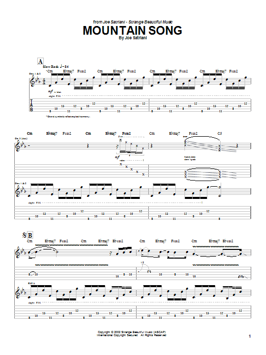 Download or print Joe Satriani Mountain Song sheet music, chords and digital score arranged for Guitar Tab. This Metal score includes 10 page(s).