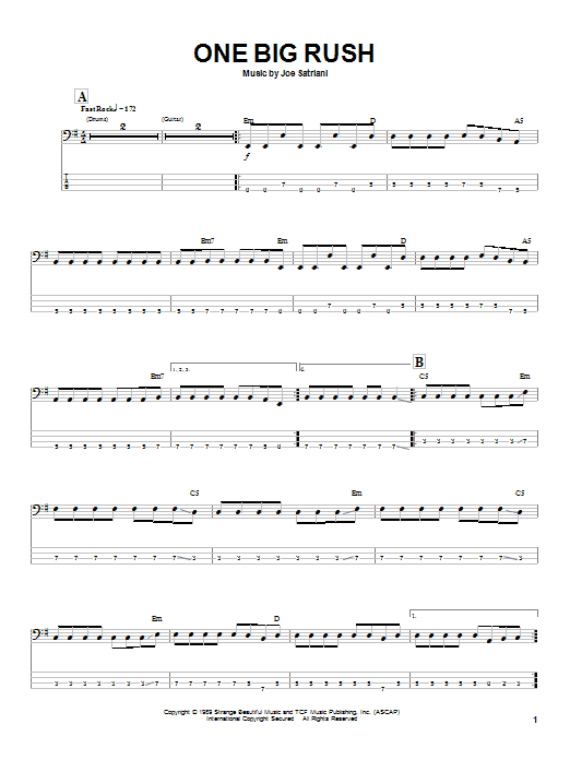 Download or print Joe Satriani One Big Rush sheet music, chords and digital score arranged for Guitar Tab. This Metal score includes 10 page(s).