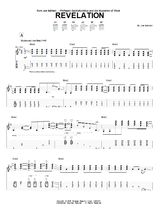 Download or print Joe Satriani Revelation sheet music, chords and digital score arranged for Guitar Tab. This Metal score includes 9 page(s).