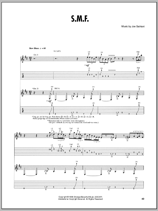 Download or print Joe Satriani S.M.F. sheet music, chords and digital score arranged for Guitar Tab. This Metal score includes 12 page(s).