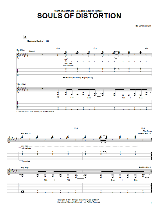 Download or print Joe Satriani Souls Of Distortion sheet music, chords and digital score arranged for Guitar Tab. This Metal score includes 13 page(s).