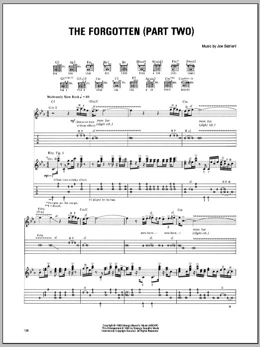 Download or print Joe Satriani The Forgotten (Part Two) sheet music, chords and digital score arranged for Guitar Tab. This Metal score includes 8 page(s).