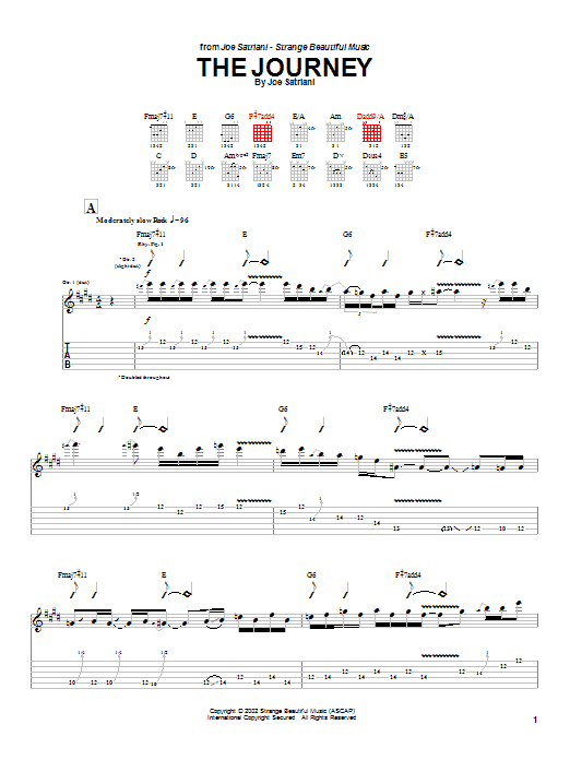 Download or print Joe Satriani The Journey sheet music, chords and digital score arranged for Guitar Tab. This Metal score includes 10 page(s).
