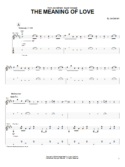 Download or print Joe Satriani The Meaning Of Love sheet music, chords and digital score arranged for Guitar Tab. This Metal score includes 13 page(s).