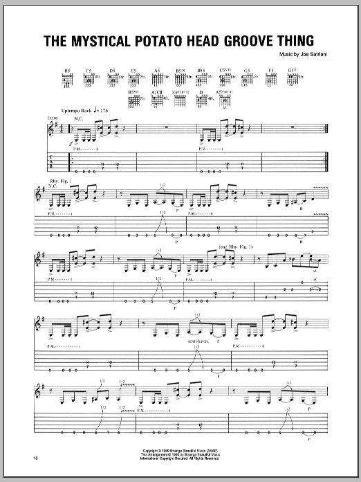 Download or print Joe Satriani The Mystical Potato Head Groove Thing sheet music, chords and digital score arranged for Guitar Tab. This Metal score includes 10 page(s).