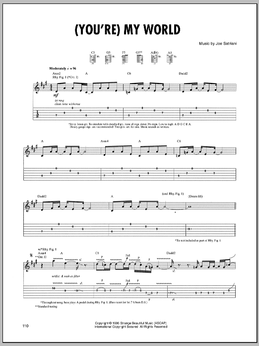 Download or print Joe Satriani (You're) My World sheet music, chords and digital score arranged for Guitar Tab. This Metal score includes 9 page(s).