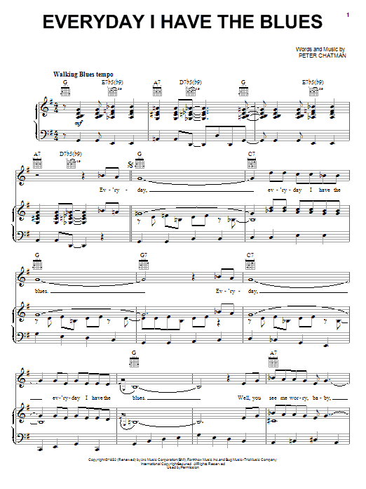 Download or print Joe Williams Everyday I Have The Blues sheet music, chords and digital score arranged for Piano, Vocal & Guitar Chords (Right-Hand Melody). This Blues score includes 5 page(s).