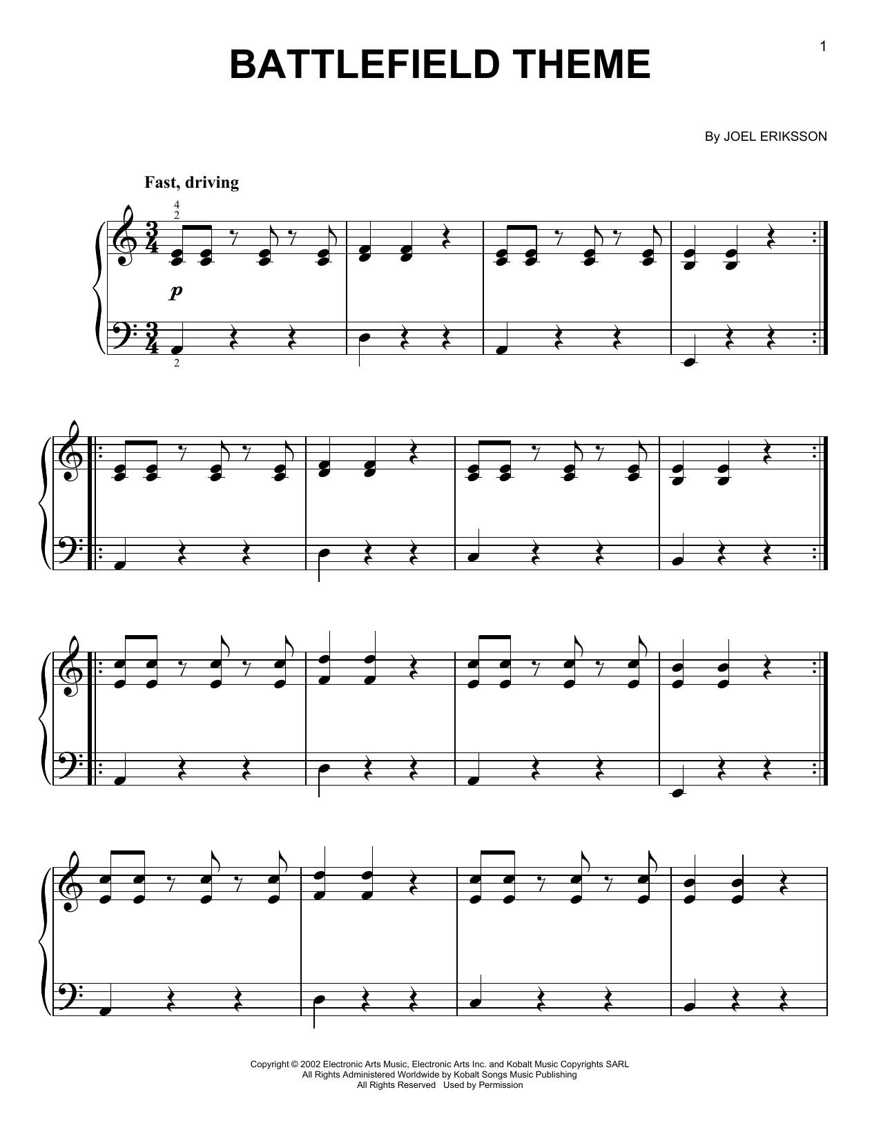 Download or print Joel Eriksson Battlefield 1942 Theme sheet music, chords and digital score arranged for Easy Piano. This Video Game score includes 4 page(s).
