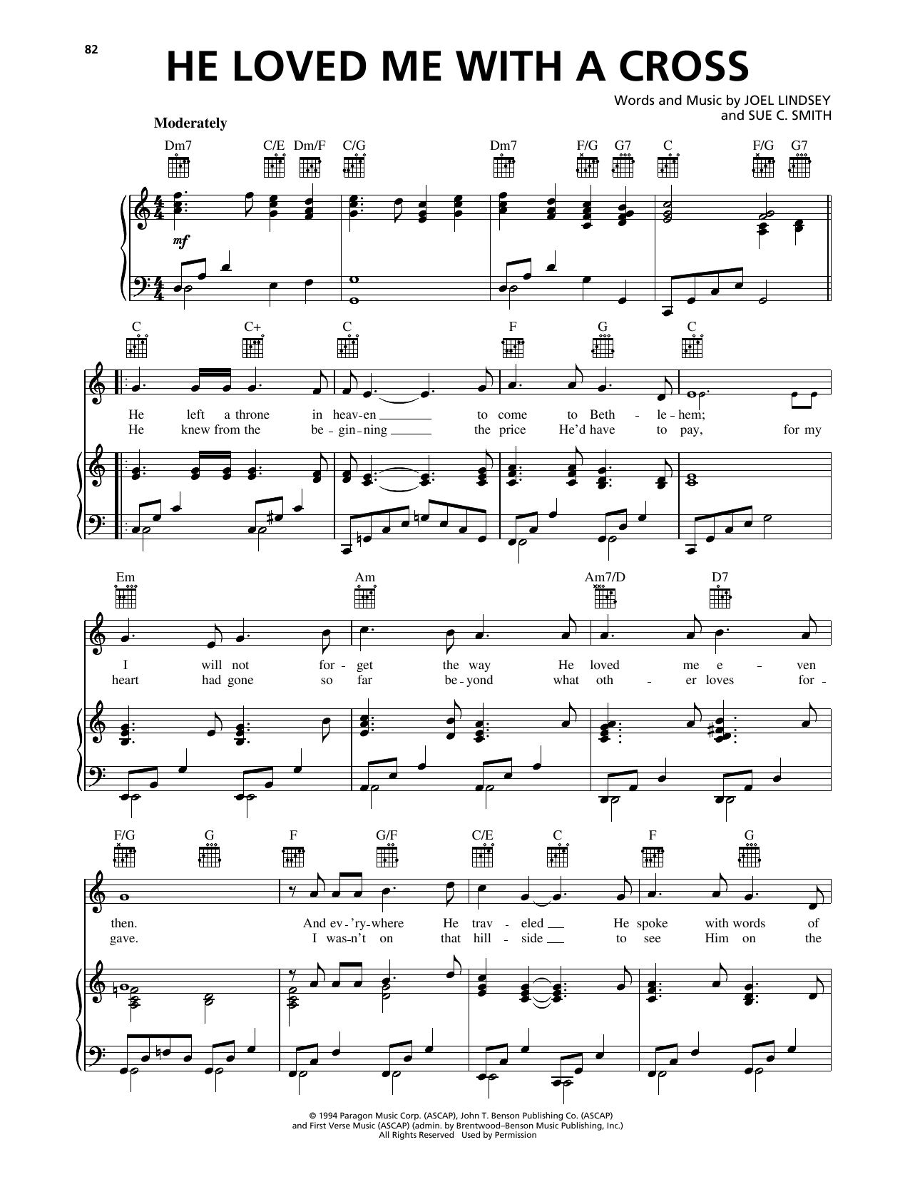 Download or print Joel Lindsey He Loved Me With A Cross sheet music, chords and digital score arranged for Piano, Vocal & Guitar Chords (Right-Hand Melody). This Gospel score includes 3 page(s).