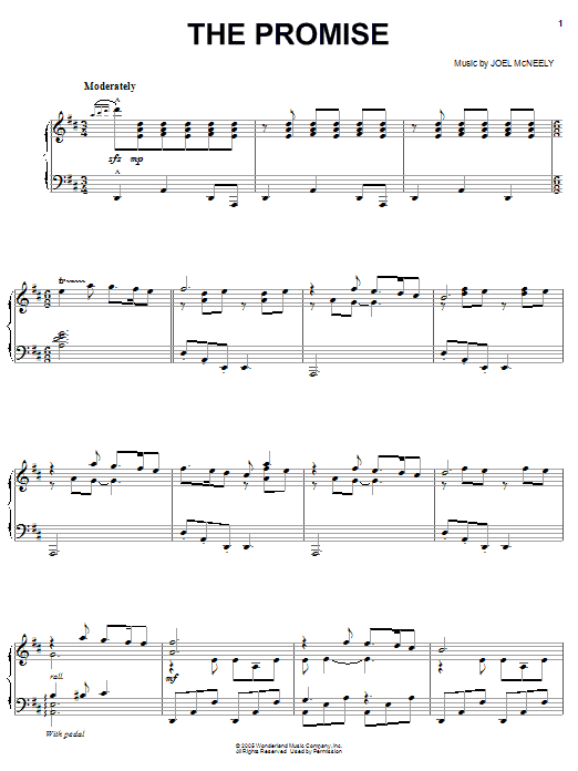 Download or print Joel McNeely The Promise sheet music, chords and digital score arranged for Piano, Vocal & Guitar Chords (Right-Hand Melody). This Children score includes 4 page(s).