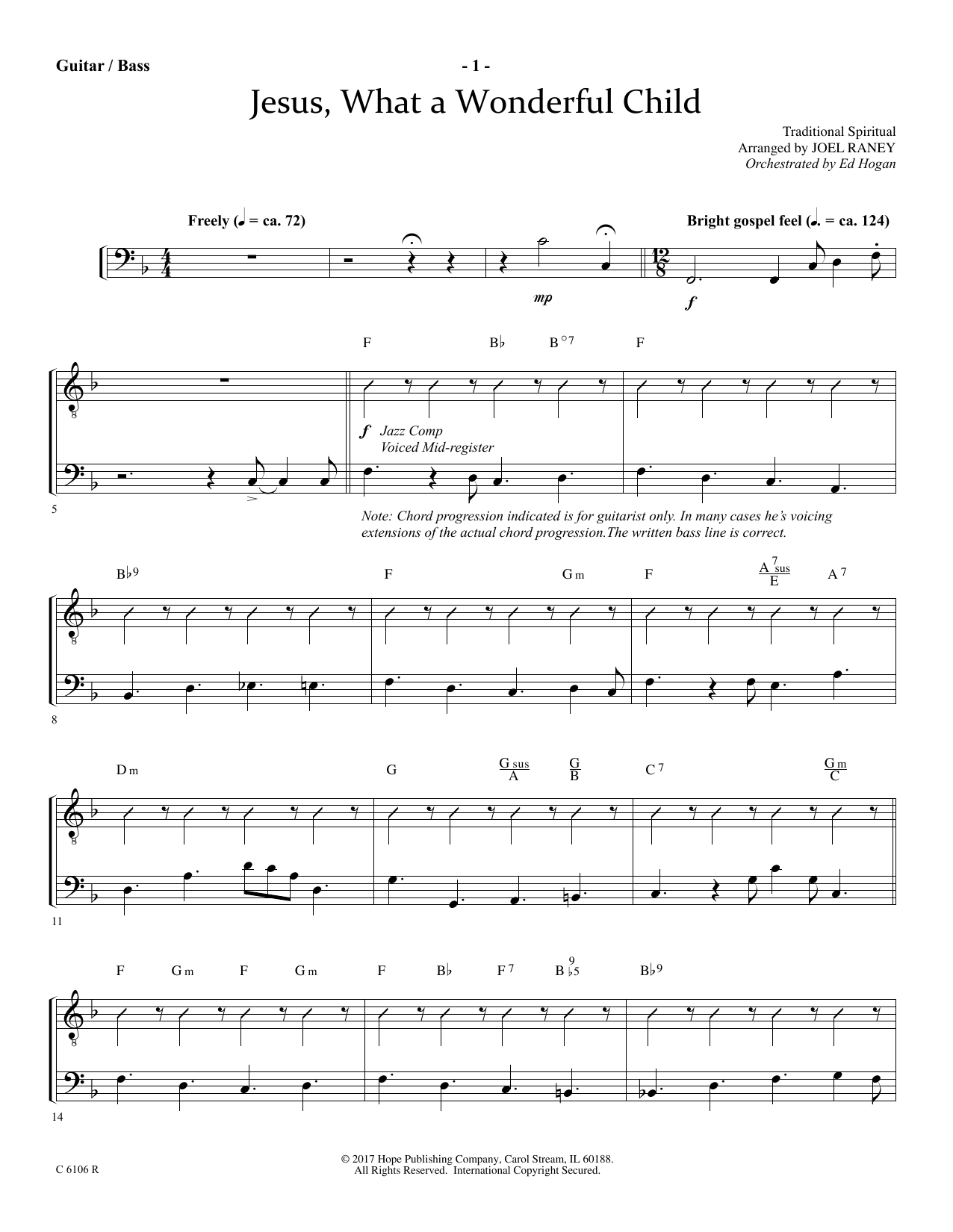 Download or print Joel Raney Jesus, What a Wonderful Child - Acoustic Guitar/Electric Bass sheet music, chords and digital score arranged for Choir Instrumental Pak. This Sacred score includes 12 page(s).
