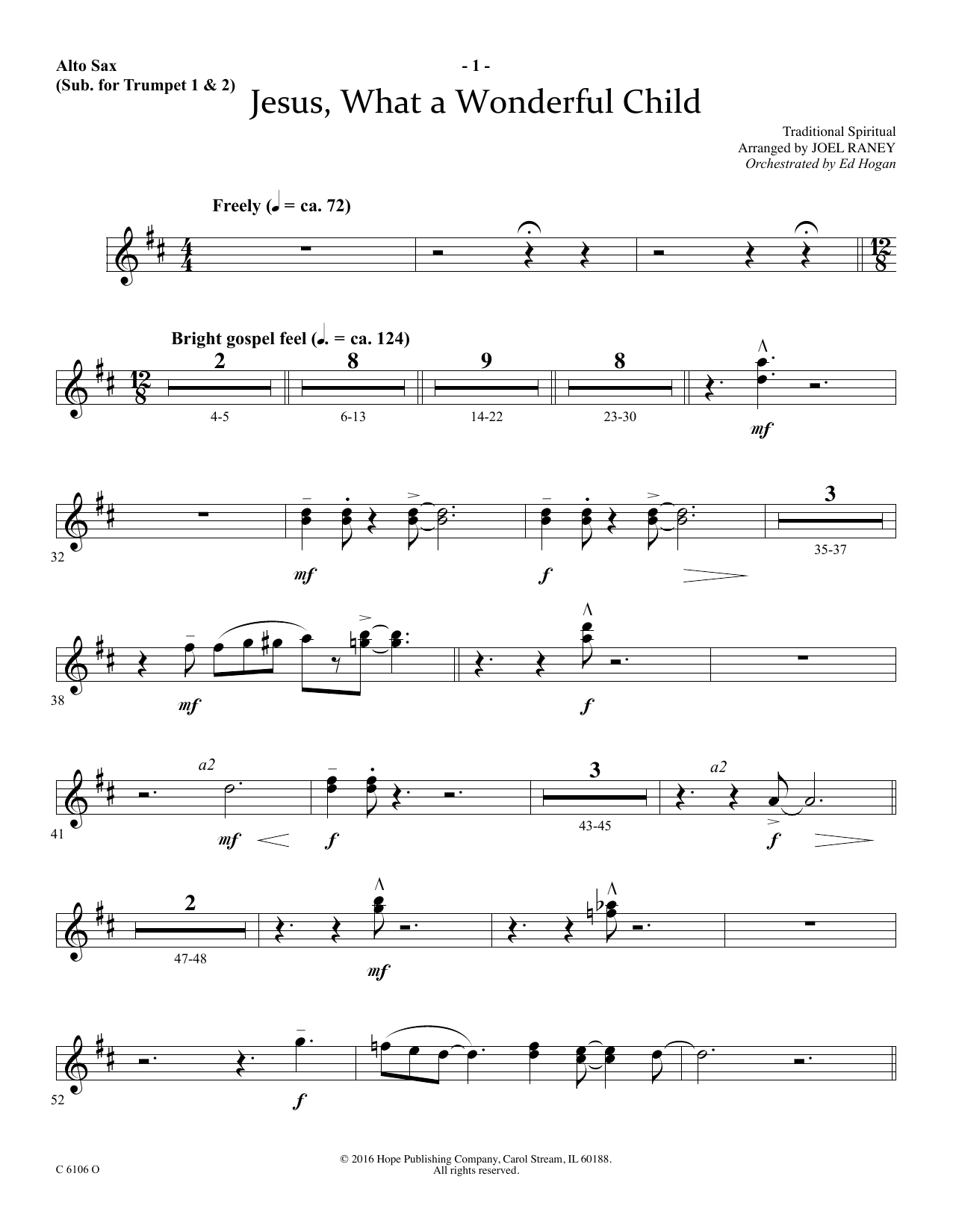 Download or print Joel Raney Jesus, What a Wonderful Child - Alto Sax (sub. Trumpet 2) sheet music, chords and digital score arranged for Choir Instrumental Pak. This Sacred score includes 2 page(s).