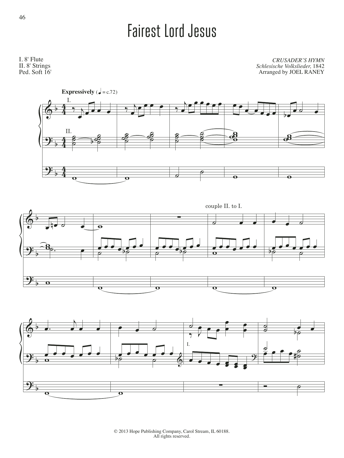 Download or print JOEL RAYNEY Fairest Lord Jesus sheet music, chords and digital score arranged for Organ. This Hymn score includes 4 page(s).