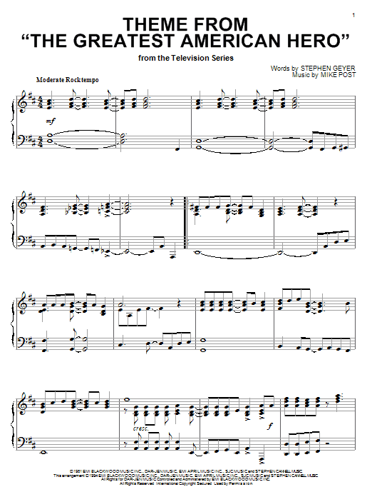 Quick facts Theme From "The Greatest American Hero" about digital sheet music