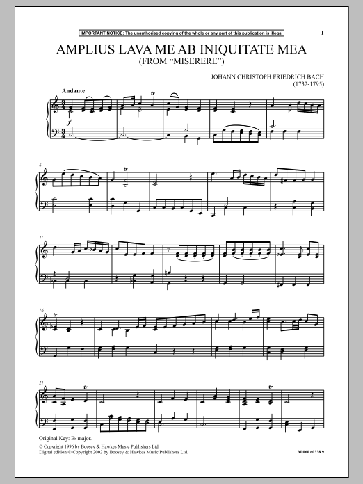 Download or print Johann Christoph Friedrich Bach Amplius Lava Me Ab Iniquitate Mea (from Miserere) sheet music, chords and digital score arranged for Piano & Vocal. This Classical score includes 7 page(s).