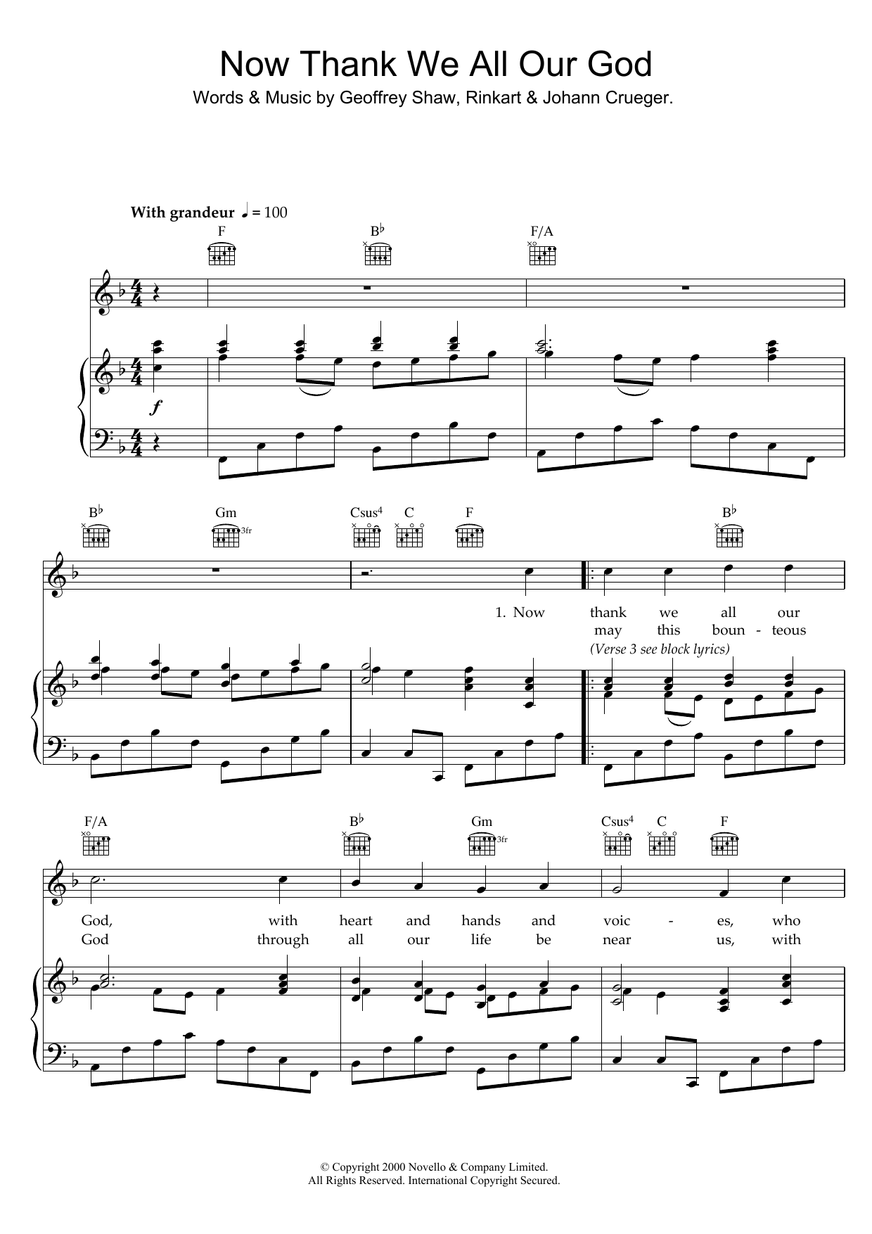 Download or print Johann Cruger Now Thank We All Our God sheet music, chords and digital score arranged for Easy Piano. This Warm-up score includes 3 page(s).