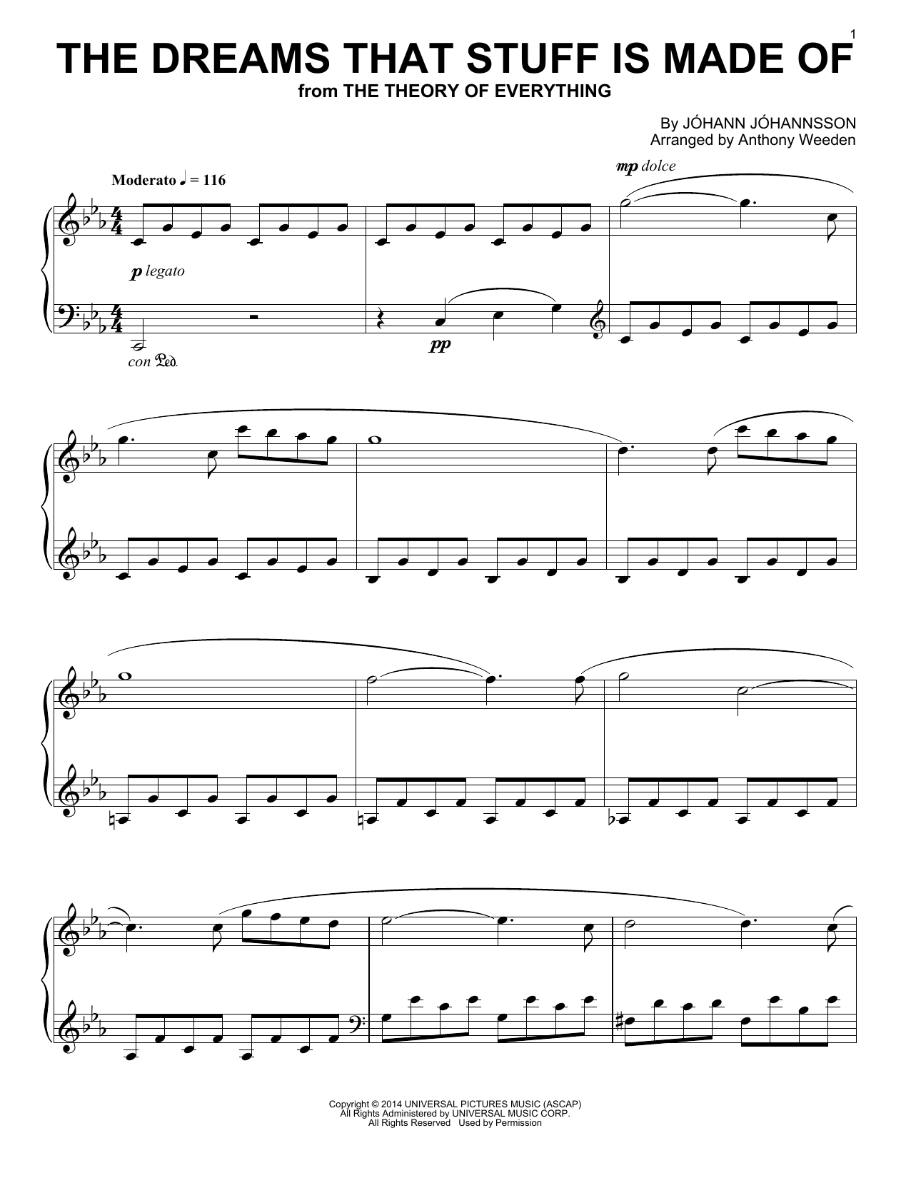 Download or print Johann Johannsson The Dreams That Stuff Is Made Of sheet music, chords and digital score arranged for Piano Solo. This Film/TV score includes 3 page(s).