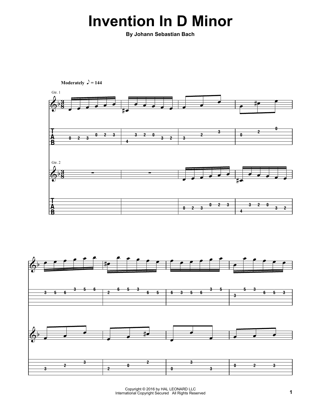 Download or print Johann Sebastian Bach Invention In D Minor sheet music, chords and digital score arranged for Guitar Tab (Single Guitar). This Classical score includes 5 page(s).
