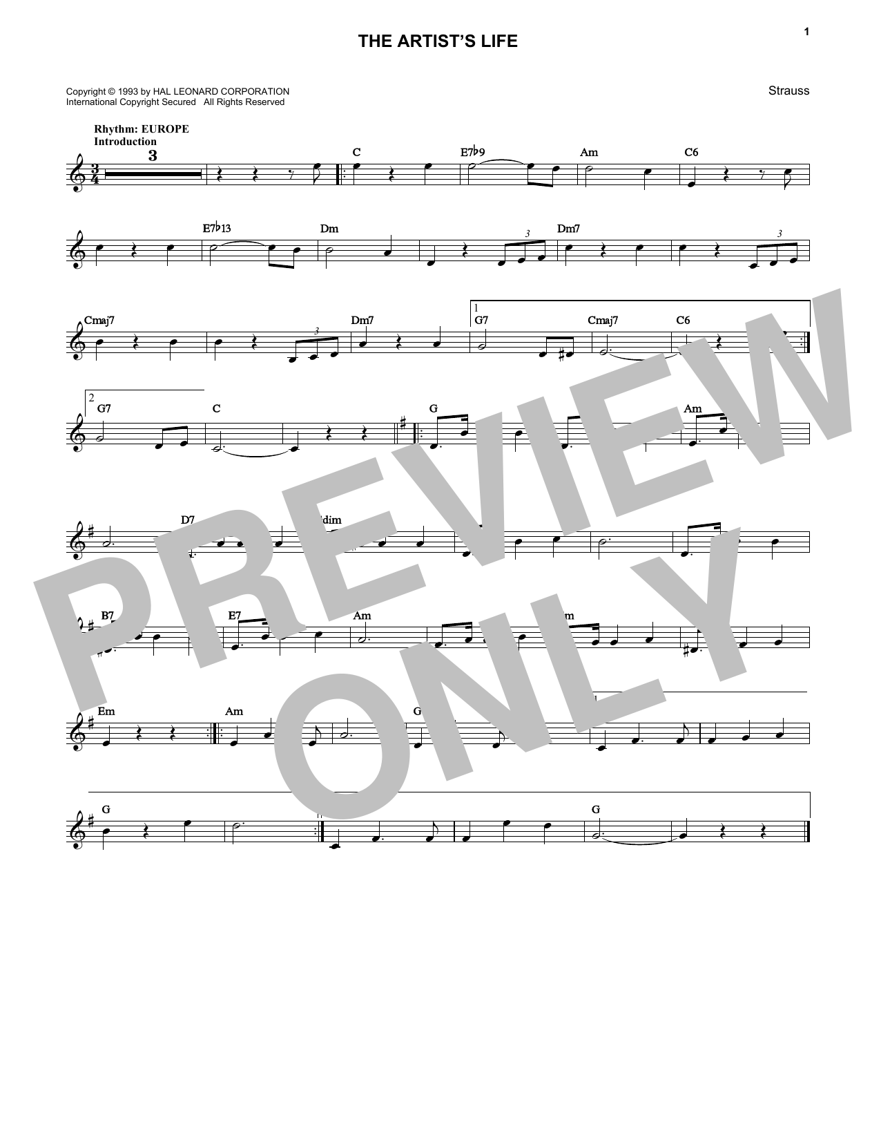 Download or print Johann Strauss, Jr. Artist's Life sheet music, chords and digital score arranged for Lead Sheet / Fake Book. This Standards score includes 1 page(s).
