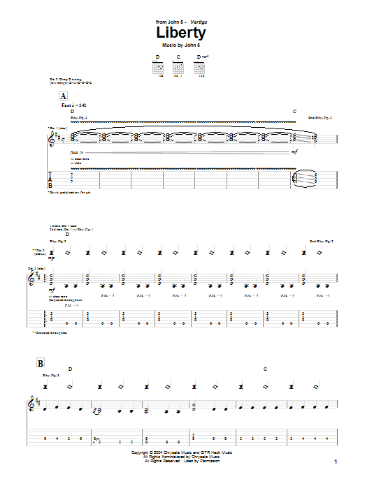 Download or print John 5 Liberty sheet music, chords and digital score arranged for Guitar Tab. This Metal score includes 12 page(s).