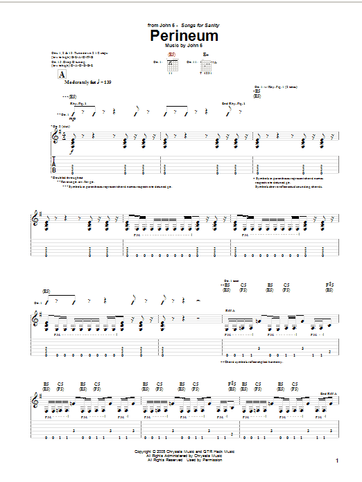 Download or print John 5 Perineum sheet music, chords and digital score arranged for Guitar Tab. This Metal score includes 15 page(s).