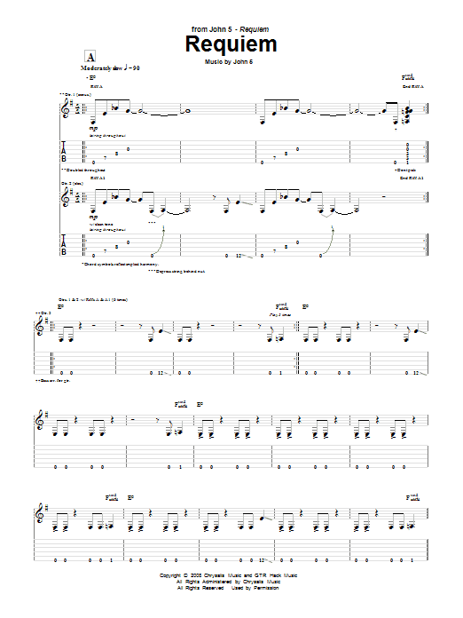 Download or print John 5 Requiem sheet music, chords and digital score arranged for Guitar Tab. This Metal score includes 4 page(s).
