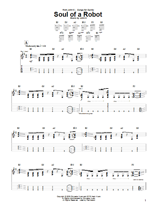 Download or print John 5 Soul Of A Robot sheet music, chords and digital score arranged for Guitar Tab. This Metal score includes 12 page(s).