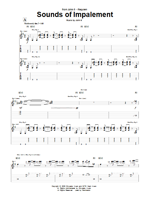 Download or print John 5 Sounds Of Impalement sheet music, chords and digital score arranged for Guitar Tab. This Metal score includes 17 page(s).