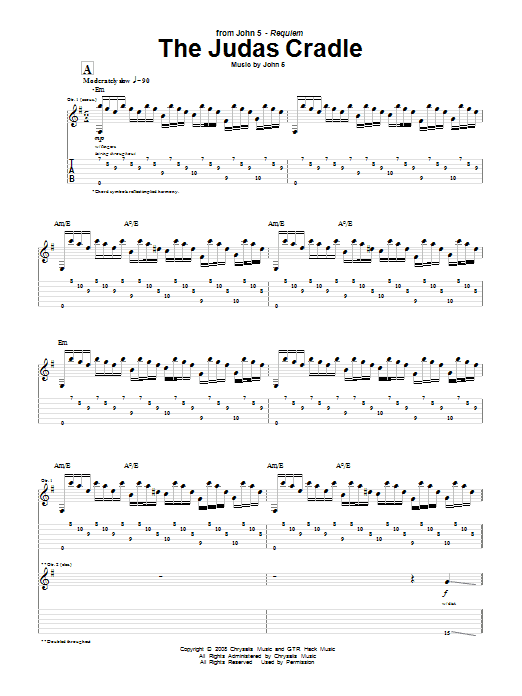 Download or print John 5 The Judas Cradle sheet music, chords and digital score arranged for Guitar Tab. This Metal score includes 10 page(s).