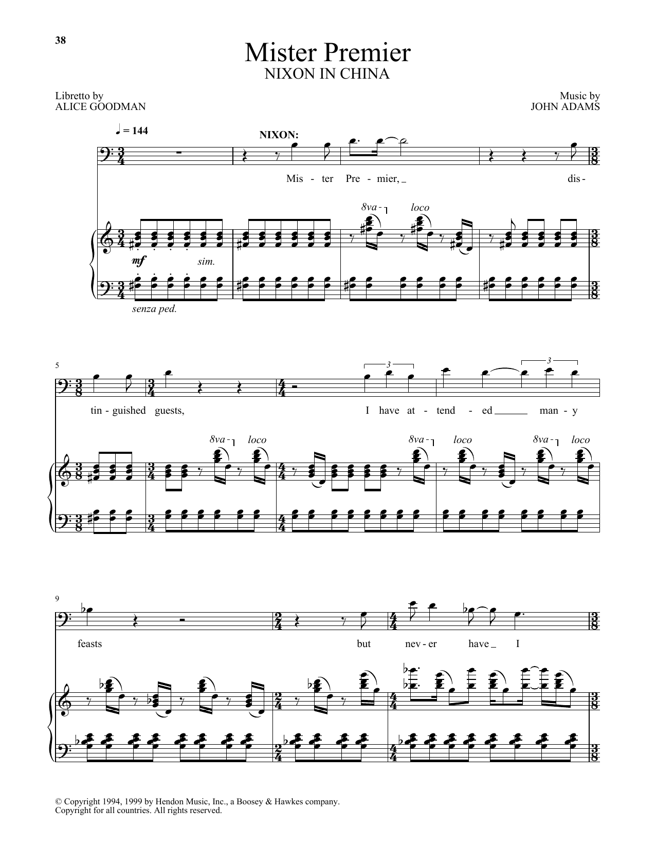 Download or print John Adams Mister Premier (from Nixon In China) sheet music, chords and digital score arranged for Piano & Vocal. This Classical score includes 9 page(s).