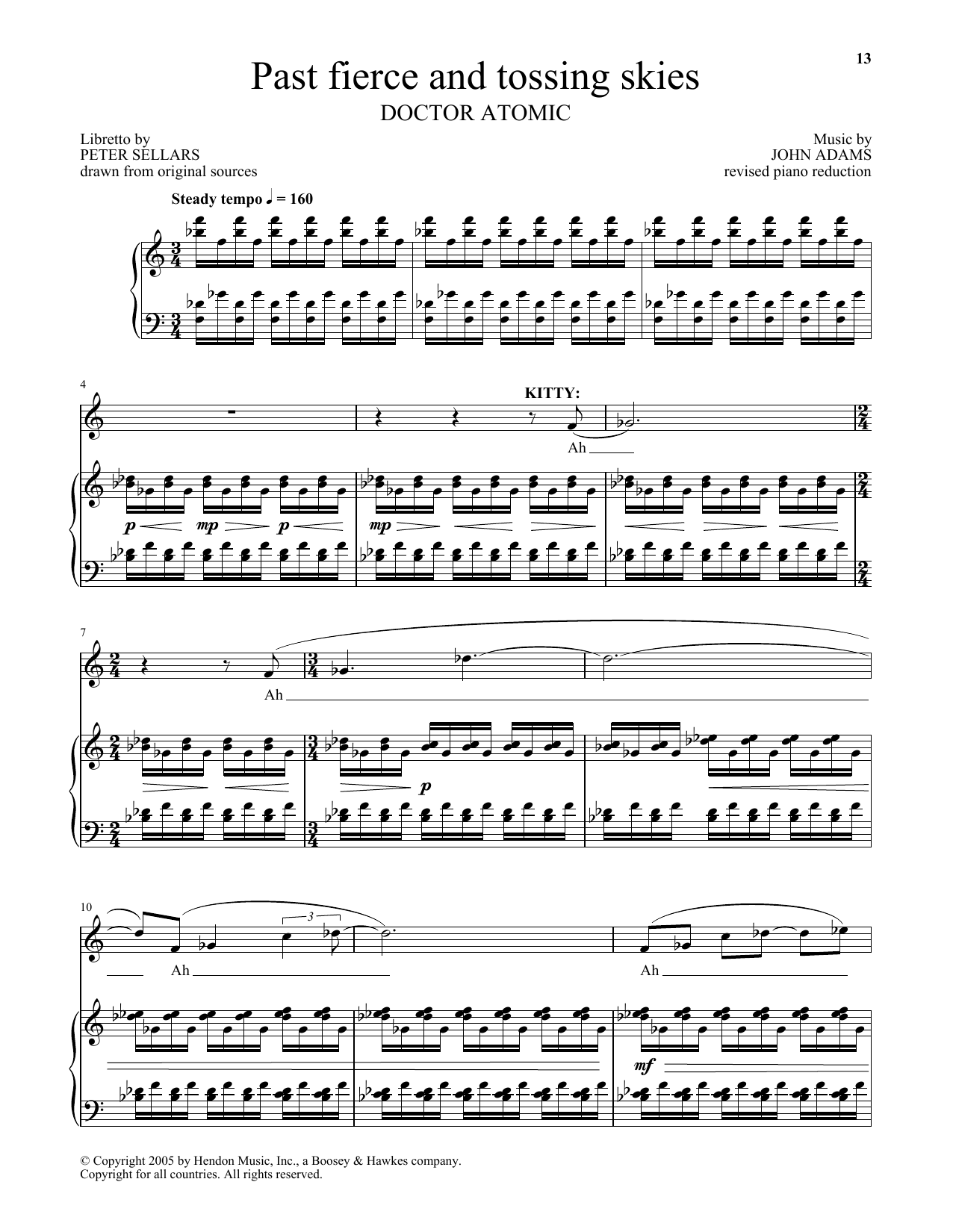 Download or print John Adams Past fierce and tossing skies (from Doctor Atomic) sheet music, chords and digital score arranged for Piano & Vocal. This Classical score includes 7 page(s).